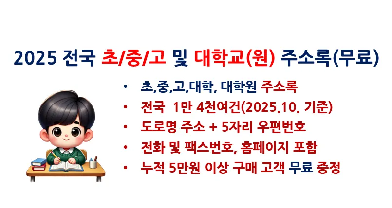 2026 전국 초/중/고 및 대학교 주소록(무료)