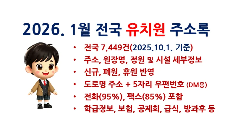 (유료) 2026년 전국 유치원 주소록(2만 / 1만)