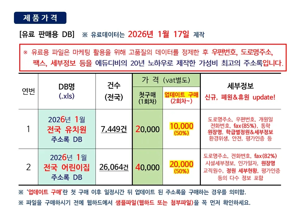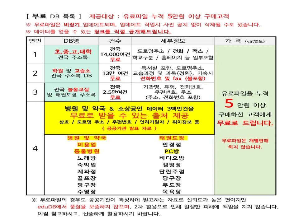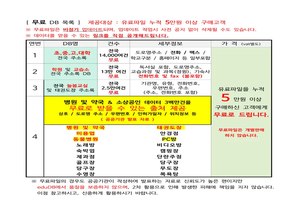 EduDB에서는 현금영수증(세금계산서와 효과 동일) 발행이 가능하며, 사업자 번호를 보내주시면 발급해 드립니다. 아래 금액은