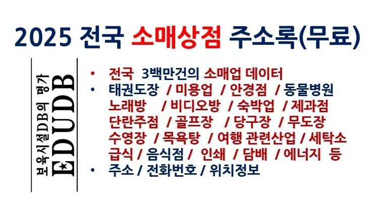 2025 전국 소매상점 주소록(무료)