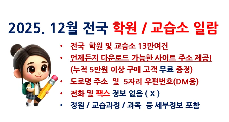 2026.1.1. 전국 학원 및 교습소 일람 파일(무료)